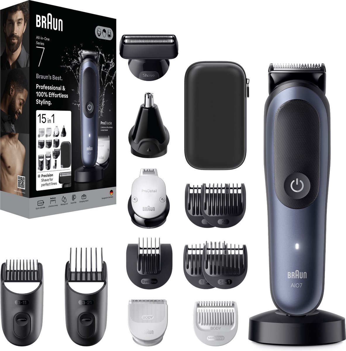 - Bij bol.com. kan je Braun All-in-One Series 7 AIO7580 Style Kit – Baardtrimmer, Tondeuse, Gezichtstrimmer en Lichaamstrimmer in 1. bestellen voor slechts €84,99 , wat 40% goedkoper is dan bij Lyko (€141,90).