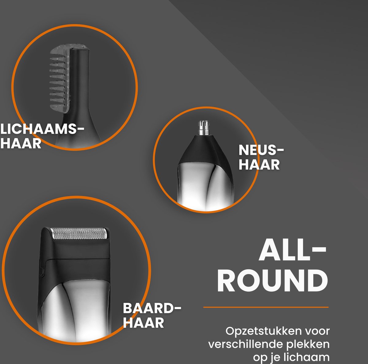 Baardtrimmer, Bodygroomer, Draaibaar trimmer opzetstuk, Extra scheeropzetstuk, Gezichtsreinigingsborstel, Neushaartrimmer, Onderhoudsmiddelen, Opbergstandaard, Opzetborstel, Opzetkam, Opzetstuk voor gevoelige zones, Opzetstuk voor gevoelige huid, Opzetstuk voor gezicht, Opzetstuk voor normale huid, Precisietrimmer, Reinigingsborsteltje, Scheeropzetstuk, Trimmer opzetstuk, USB lader
