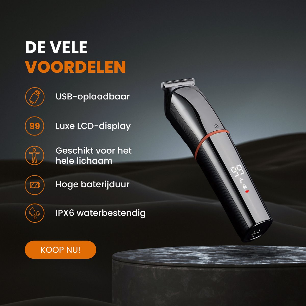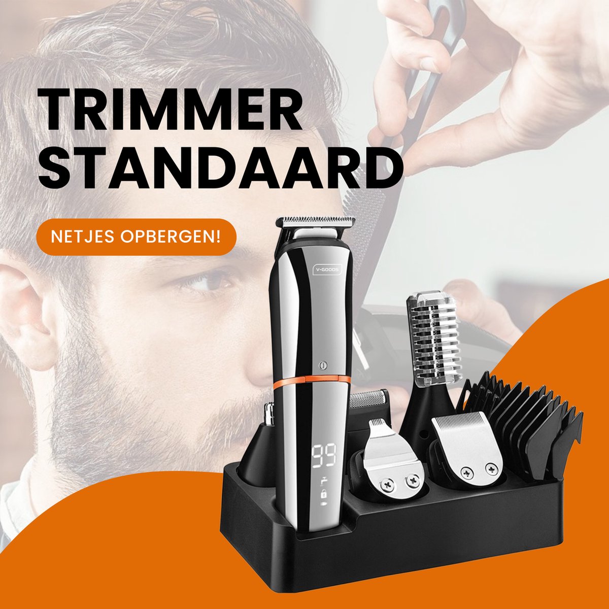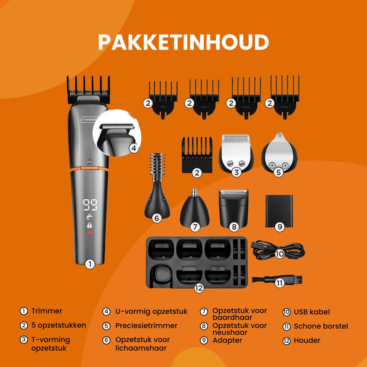 V-Goods Professionele 6 in 1 Baardtrimmer – 5 opzetstukken – 5 verschillende kammen – Standaard – Borstel – USB lader – Handleiding