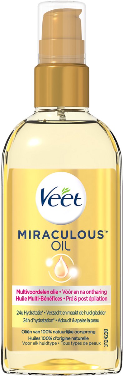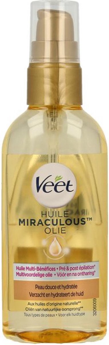 - Bij bol.com. kan je Veet - Aftercare - Natuurlijke Voedende Olie - Voor & na ontharing - Miraculous Arganolie - 100 ml. bestellen voor slechts €9,07 , wat 30% goedkoper is dan bij Deonlinedrogist (€12,99).